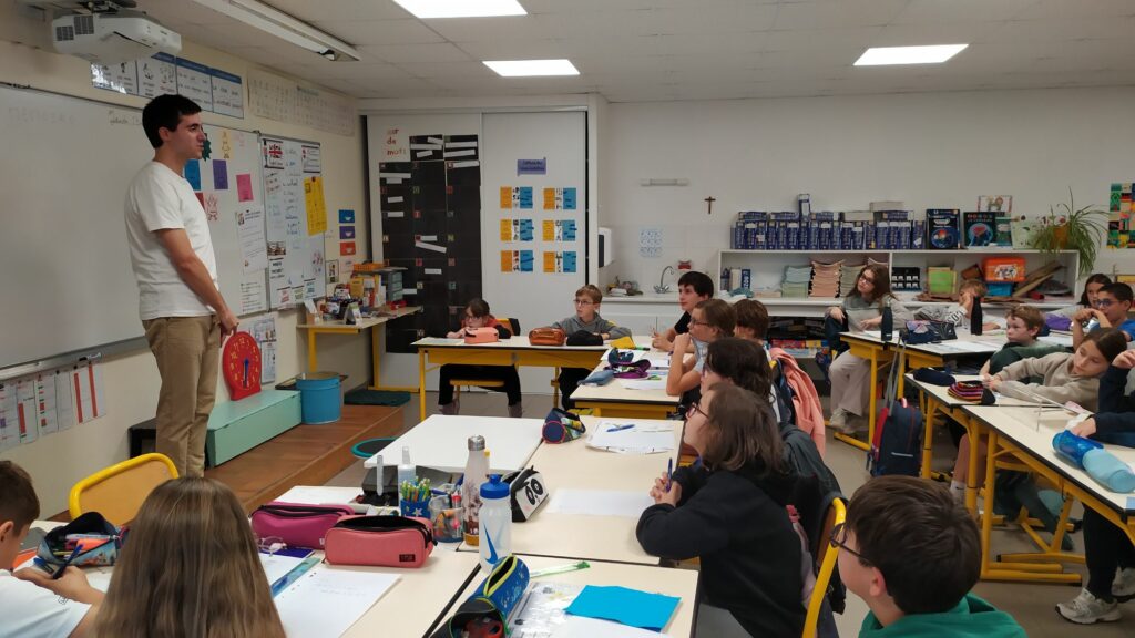 Cette année, nous avons participé à la Nuit des Jardins organisée par Saint Gilles Croix de Vie. Nous avons confectionné un épouvantail, dénommé Bilbo, à la demande de Mme Alabert. Il a été exposé le 6 septembre à l’occasion de la journée culturelle organisée par la ville. Parmi les nombreux épouvantails créés par différents collectifs, notre Bilbo a terminé deuxième au concours, grâce aux votes de nombreux admirateurs. Nous avons été chanceux et récompensés par la ville avec des billets pour voir un spectacle de magie et mentalisme à la salle de la Conserverie. Par ailleurs, les deux artistes, Louis et David, sont venus nous partager quelques clés de la mémoire la veille du spectacle à l’école, lors d’un spectacle immersif dans la salle de classe.