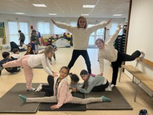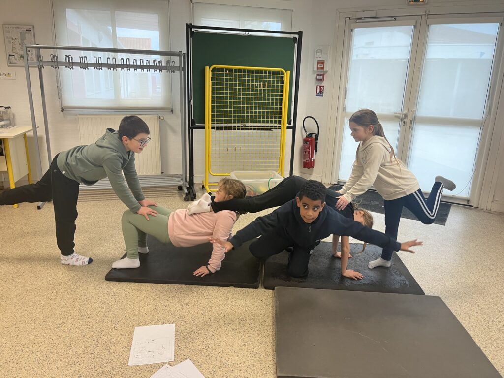 Au mois de décembre, les élèves ont débuté un cycle d’acrosport. Tout au long de ce projet, ils ont découvert et expérimenté différentes figures acrobatiques, en travaillant en équipe.